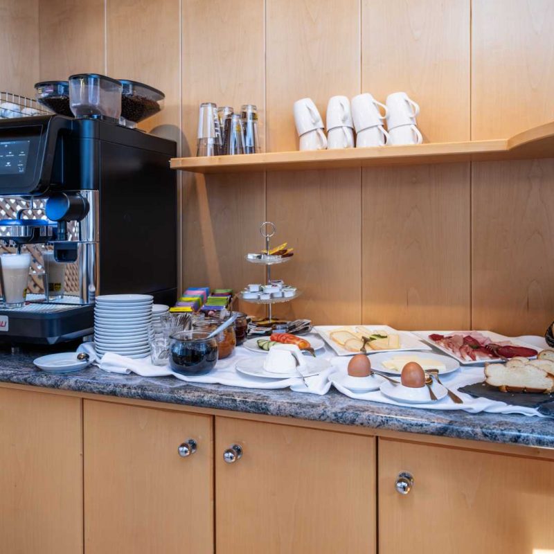 Auch für das leibliche Wohl kümmern wir uns und bieten Ihnen Frühstück an. Am Morgen bedienen Sie sich an einem reichhaltigen Frühstücksbuffet mit vielen frischen Produkten. Überzeugen Sie sich selbst von dem gepflegten Ambiente in unseren Häusern und unserer Gastfreundschaft. Wir freuen uns jetzt schon auf Ihren Besuch!